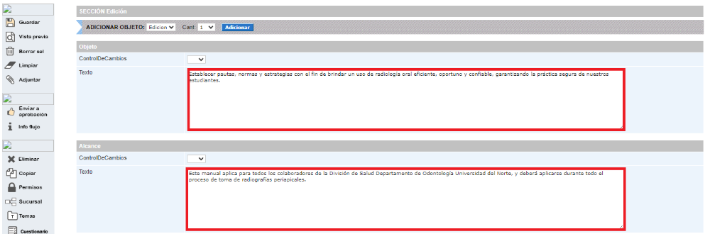 - Debe diligenciar el Objeto y Alcance del documento asegurando que la información proporcionada sea clara, completa y precisa.