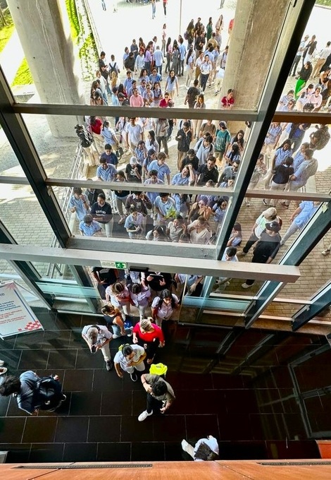 "Vimos el humo simulado, los brigadistas nos ayudaron y guiaron para evacuar hasta el Bambú, esto es muy importante para cuando en verdad pase algo así sepamos qué hacer. Es un ejercicio que, más allá de la simulación, nos enseña a ser mejores ciudadanos", expresó Sofía, estudiante de Negocios Internacionales.