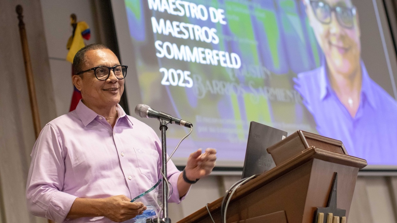 Durante la inauguración también se hizo la entrega del Premio Maestro de Maestros Sommerfeld al profesor Agustín Barrios Sarmiento, del Departamento de Matemáticas y Estadística. Este reconocimiento nacional, que exalta la labor de educadores en ciencia, busca inspirar a nuevas generaciones a través del ejemplo de maestros que, como Arnold Sommerfeld, transformaron vidas y fomentaron la innovación.