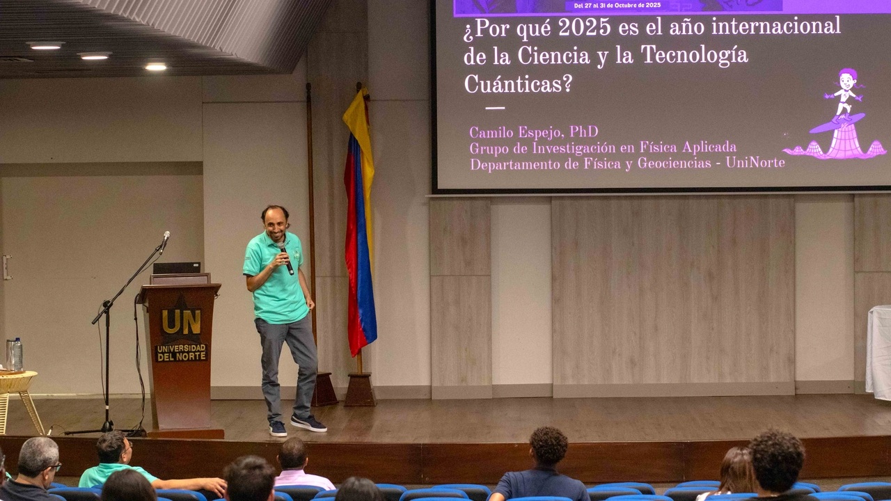 ¿Qué tienen en común un rayo láser, un teléfono móvil y un panel solar? La respuesta está en la mecánica cuántica. Con esa premisa, la Universidad del Norte inauguró el lunes, 27 de octubre, la doceava edición de Geoexpofísica, la feria académica organizada por el Departamento de Física y Geociencias, cuya programación conmemora en esta ocasión el Año Internacional de la Ciencia y la Tecnología Cuánticas.